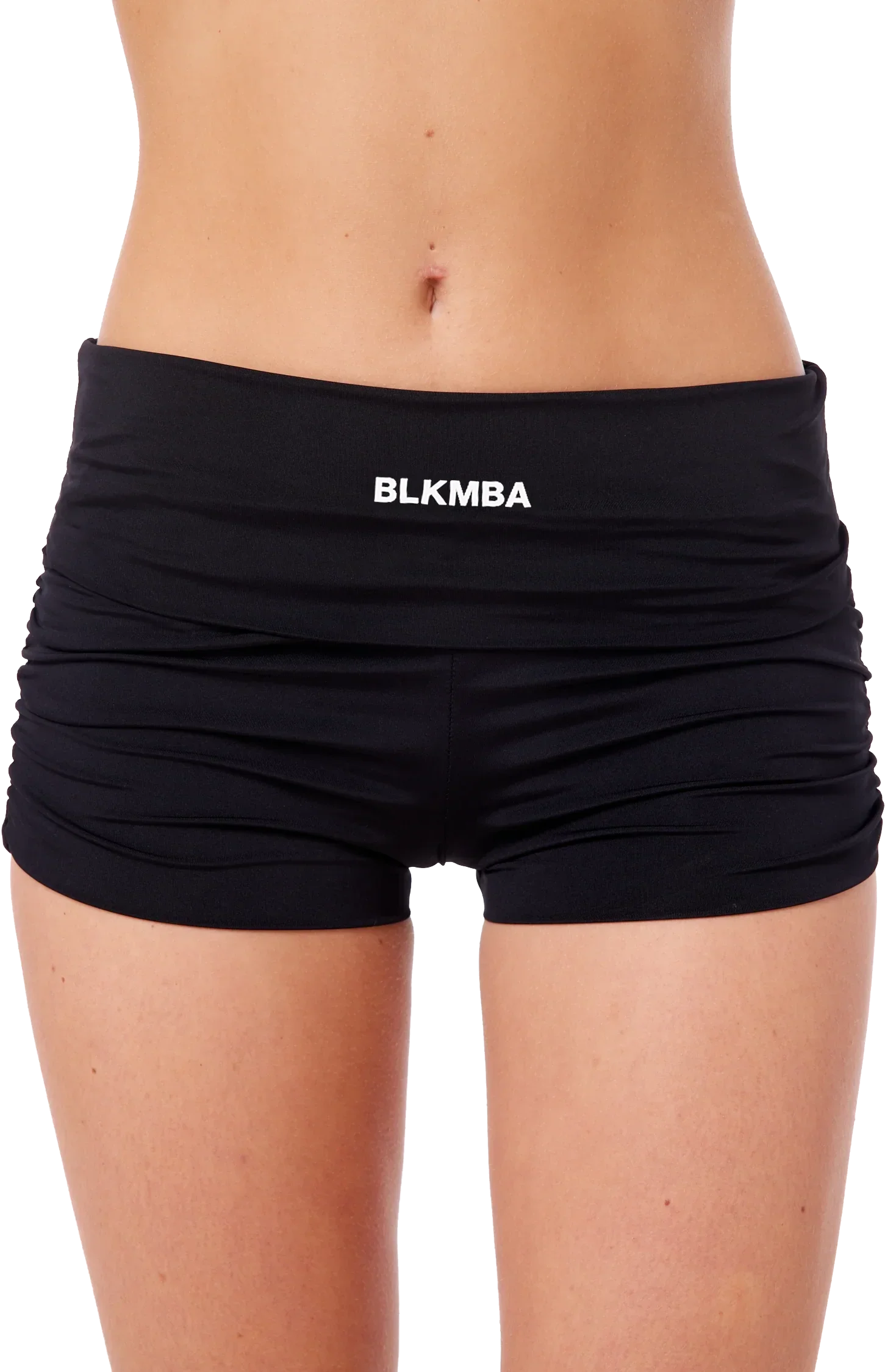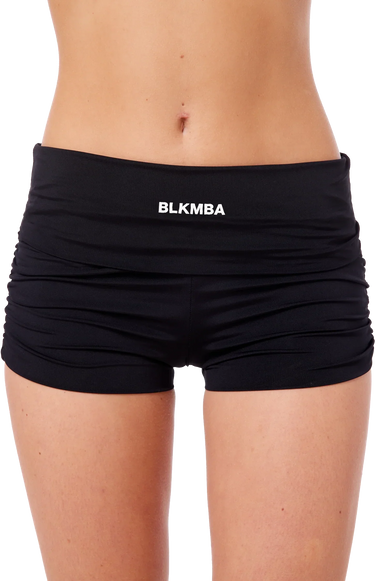 Microshort de tela súper elastizada y frunce en los laterales. Estampa blkmba en centro.