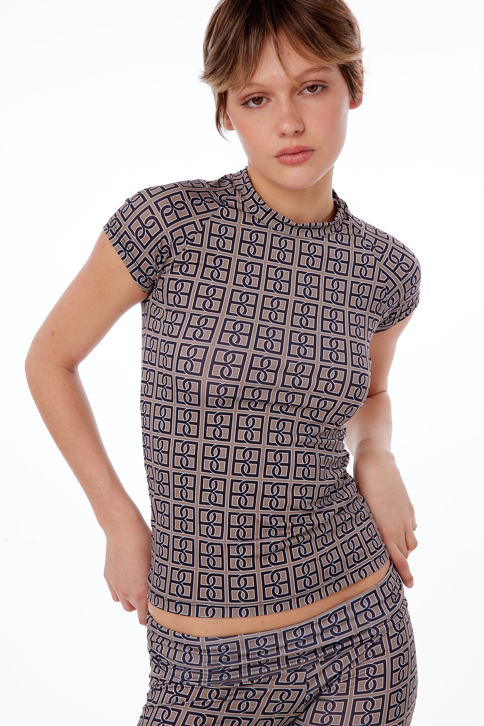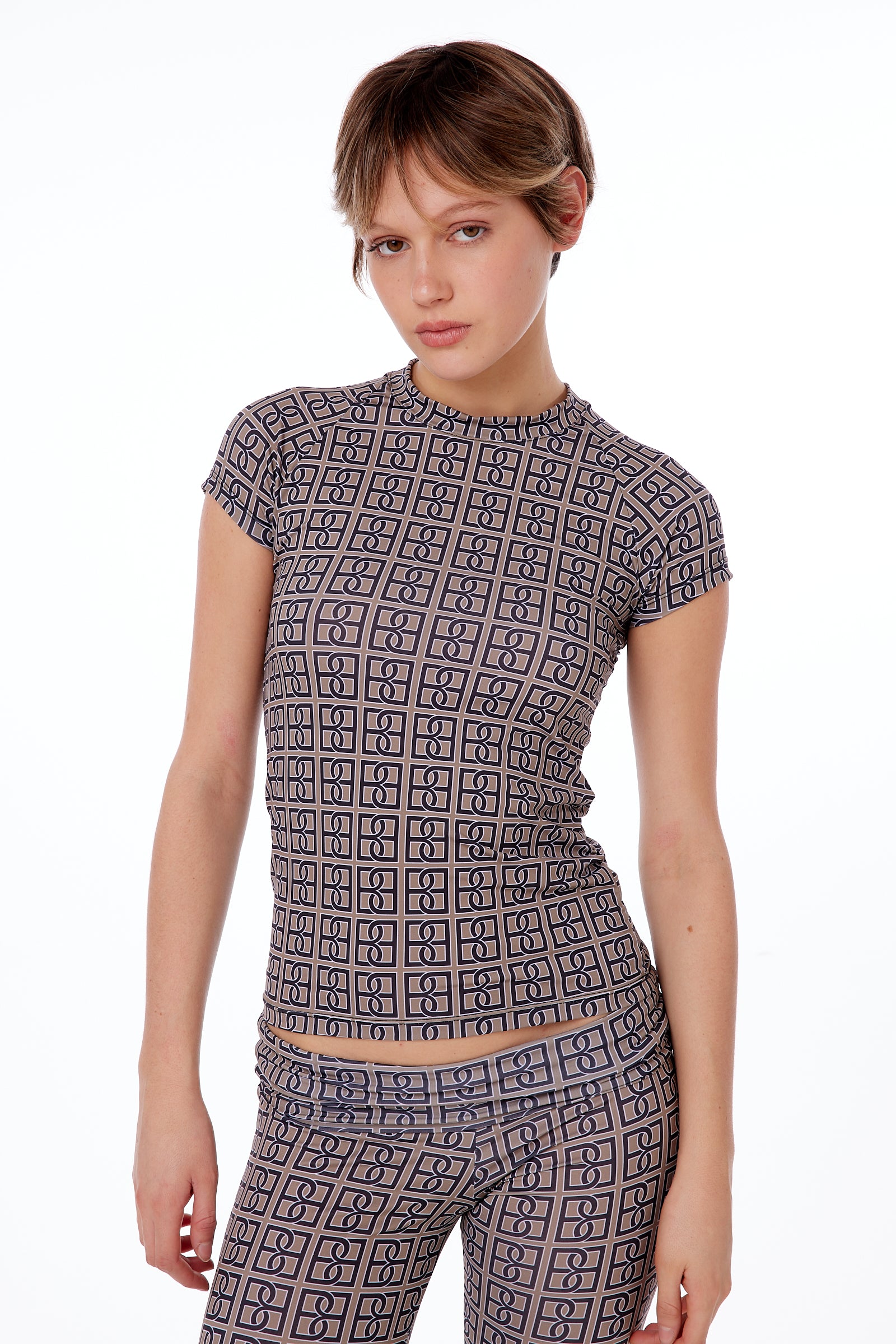 Remera anatómica manga corta de polisoft con estampa celebrity.