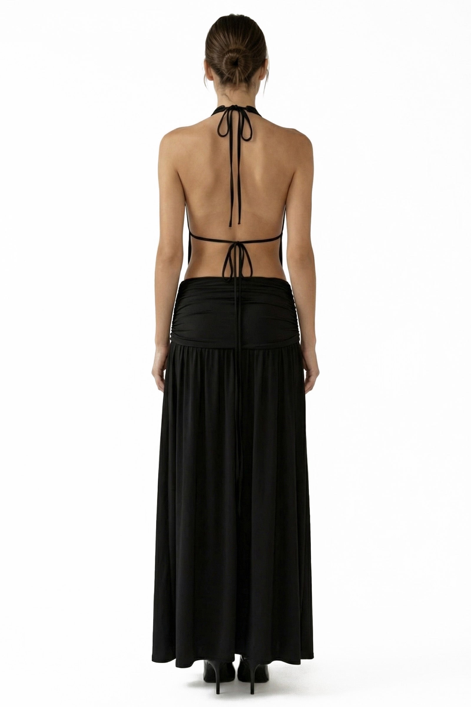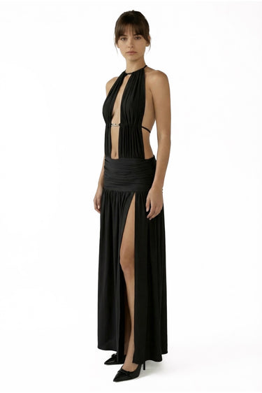 Vestido de microfibra con frunce en delantero y trasero con forrería interior embolsa. Tajo en frente lateral.