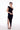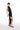 Vestido de microfibra con jareta en lateral y tiras para regular el largo. Posee cuello bote flexible que puede colocarse de distintas maneras.